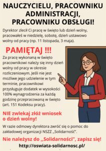 Opinia Prezydium Krajowej Sekcji Oświaty NSZZ „Solidarność”w sprawie stosowania średniej ważonej przy ustalaniu oceny ucznia Wprowadzenie W związku z informacjami przekazywanymi przez liczne organizacje związkowe NSZZ „Solidarność” w sprawie zmian w statutach szkół i placówek […]